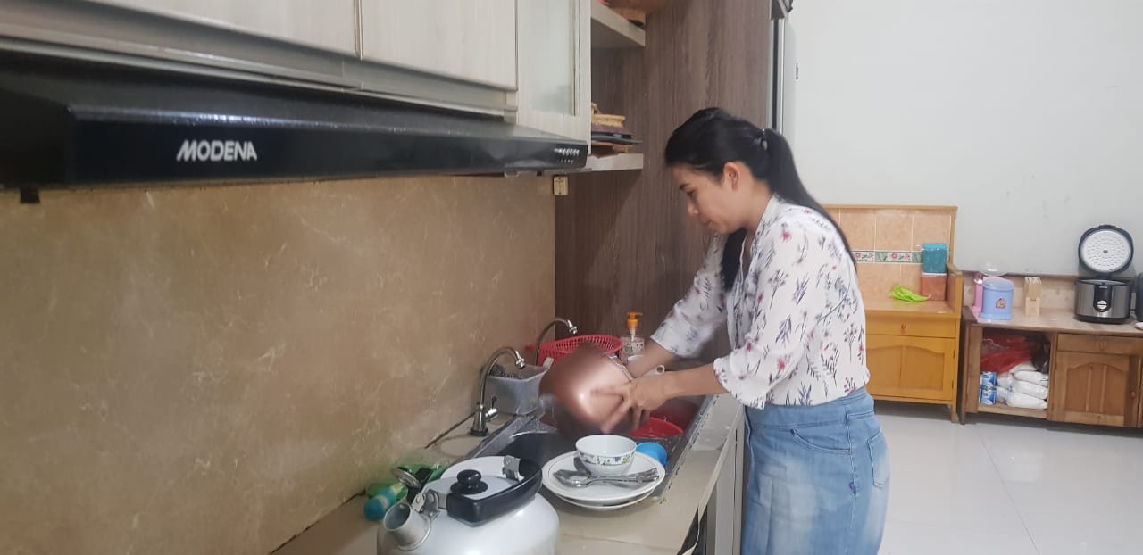 “Saya juga bermain bersama anak-anak, bercerita, bercanda dan tawa. Sehingga rasa bosan hilang seketika, saat mengerjakan kegiatan beres-beres rumah,” katanya, Tjhai Chui Mie seseblumnya terkonfirmasi covid-19 bersama suami dan kedua anaknya.
