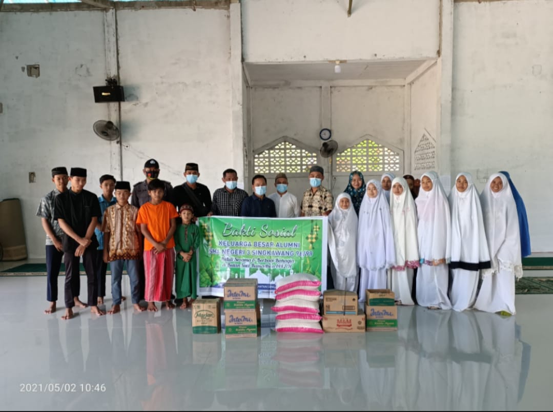 SINGKAWANG KITA – Sejumlah mantan siswa yang merupakan alumni SMA Negeri 3 (Smuntie) Singkawang angkatan tahun 1999, kembali menggelar bakti sosial dengan memberikan paket berupa sembako kepada masyarakat kurang mampu seperti Panti Asuhan dan Masyarakat yang tinggal di Jalan Hansip serta Patora Kelurahan Sekip Lama, Singkawang Tengah, Minggu (2/5/2021).