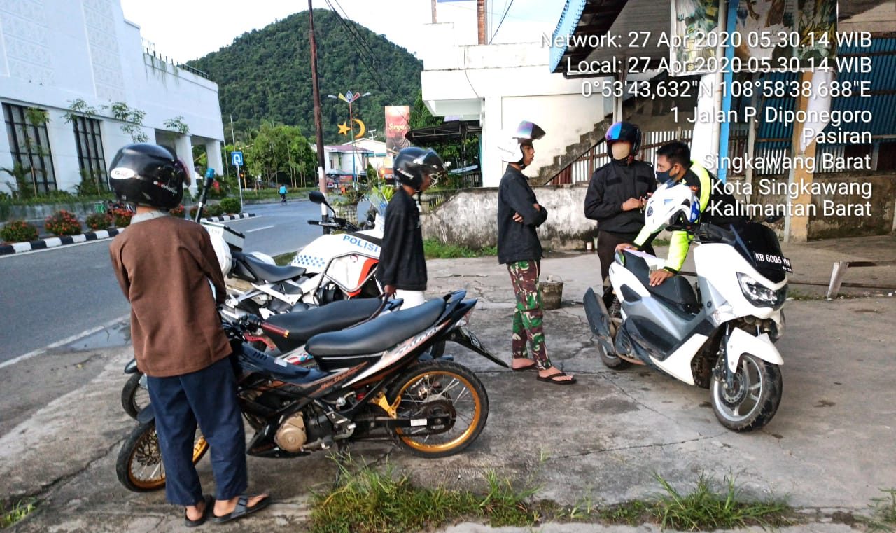 SINGKAWANG, KITA – Satuan Lalu Lintas Polres Singkawang mengamankan sejumlah remaja atau pelajar yang sedang berkumpul tanpa menggunakan masker, Senin (27/4) dini hari atau selepas Sahur.