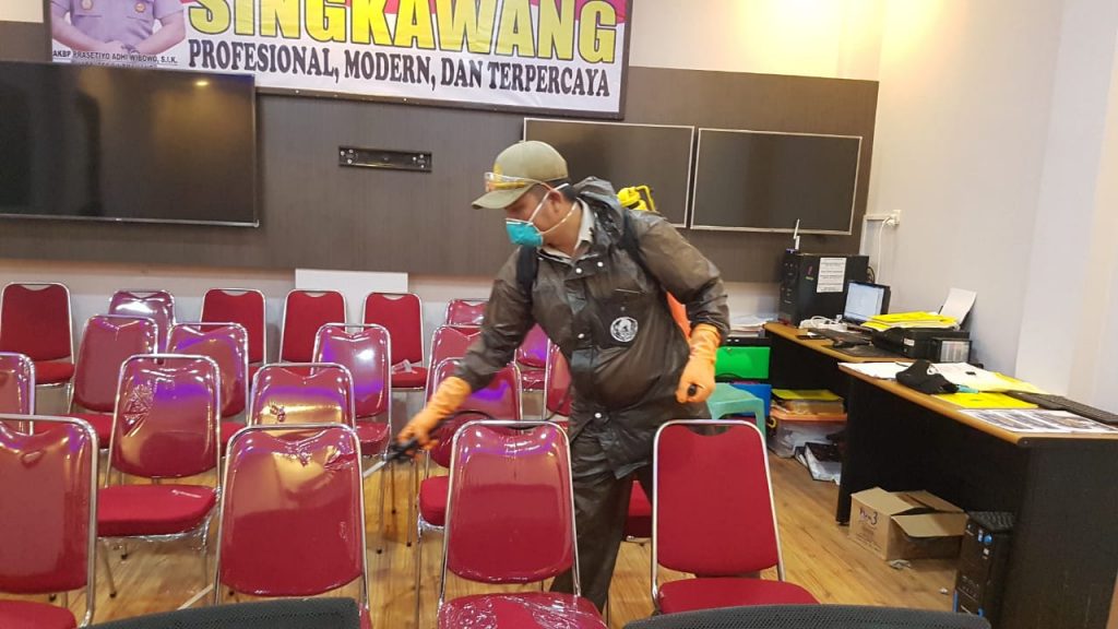 “Sesuai dengan arahan Kapolda agar kita selalu menjaga kebersihan dan kesehatan lingkungan, Polres Singkawang juga melakukan penyemprotan disinfektan guna mencegah serangan virus,” kata Kapolres Singkawang AKBP Prasetiyo Adhi Wibowo Rabu 18 Maret.