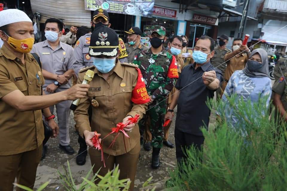 SINGKAWANG KITA – Wali kota Singkawang, Tjhai Chui Mie meresmikan peluncuran Videotrone Bahan Pokok(Bapok) di Pasar Beringin Singkawang, Selasa (22/12).