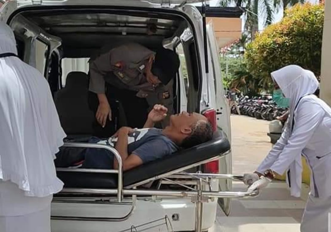 Bripka Dedi Mulya yang sehari-hari bertugas di SPKT Polres Singkawang, merombak mobil pribadinya untuk membawa masyarakat tersebut ke RSUD Abdul Aziz Singkawang.