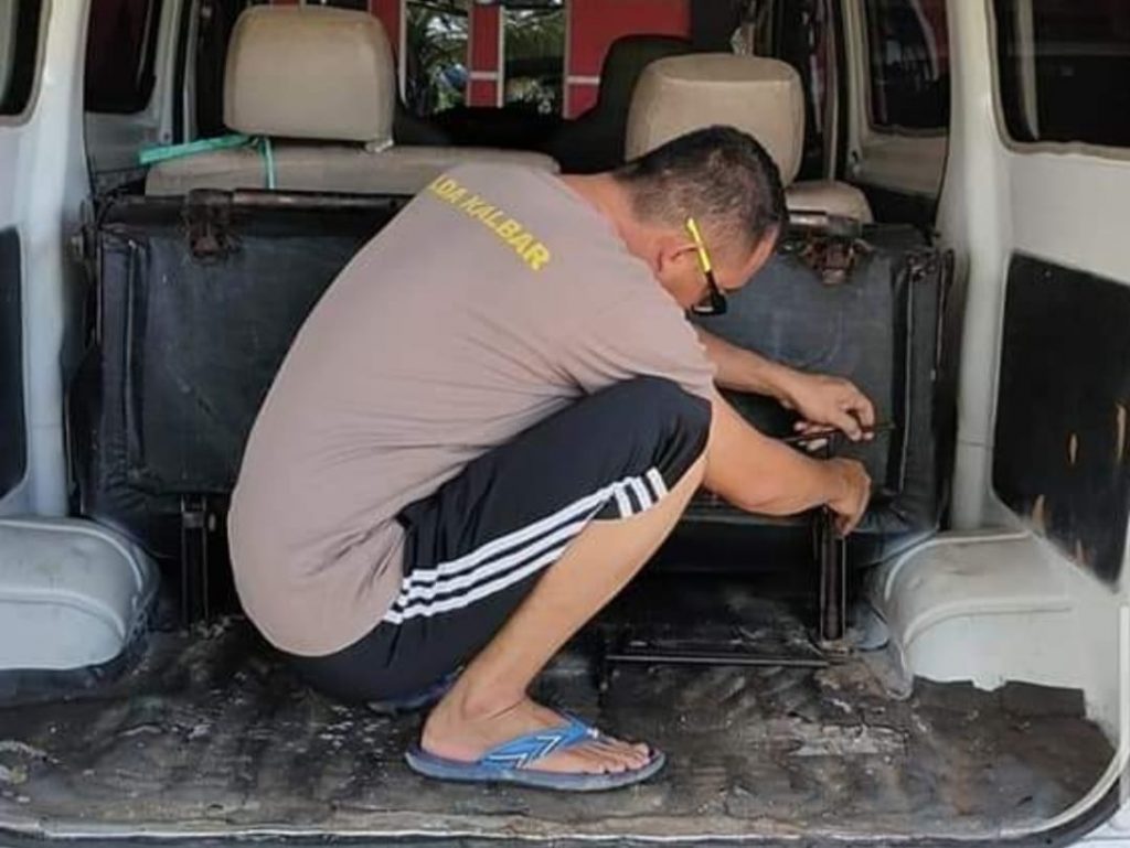 Bagian kursi belakang minivan akhirnya dimodifikasi serta diberi kasur agar Markam Wahyudi dapat berbaring didalam perjalanan menuju RSUD Abdul Aziz.