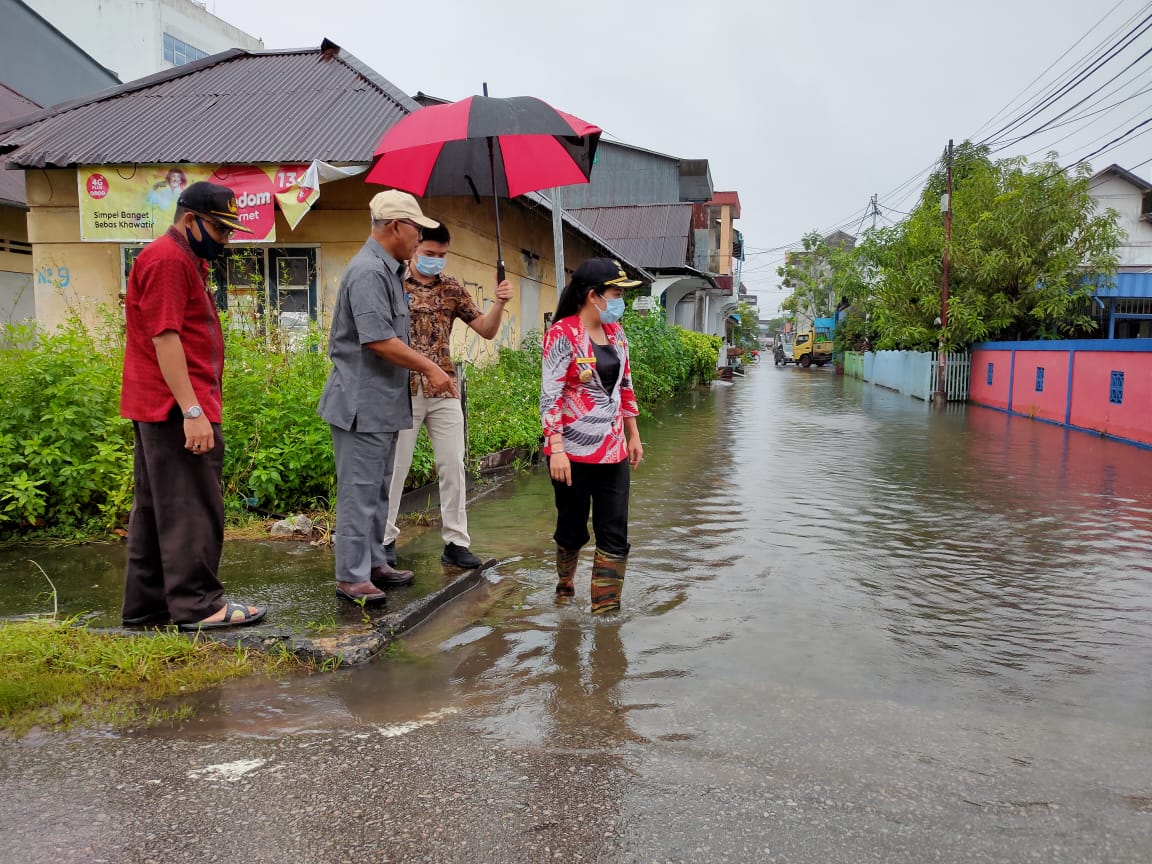 Wali Kota Singkawang, Tjhai Chui Mie turun langsung memantau sejumlah wilayah di Kota Singkawang, meski dibawah guyuran hujan ia mendatangi titik-titik yang menjadi simpul genangan air.