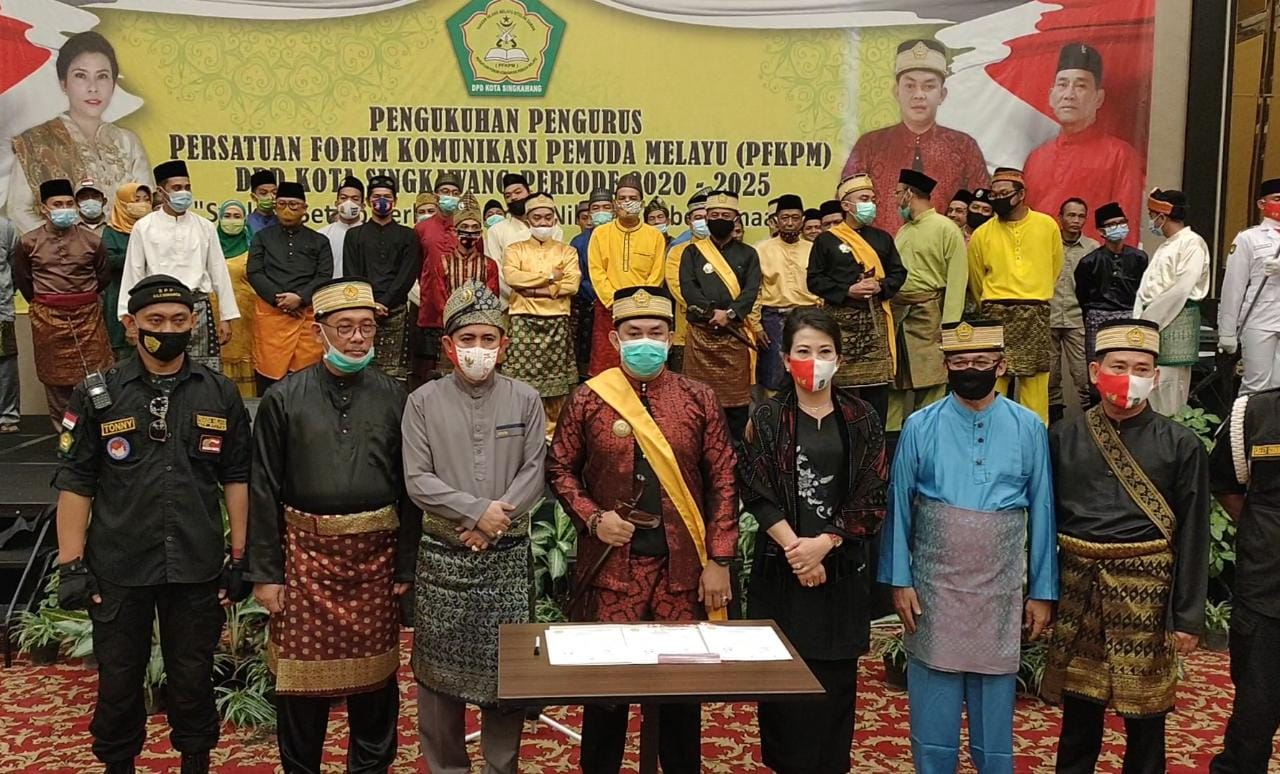 SINGKAWANG, KITA- Ketua dan Kepengurusan DPD Persatuan Forum Komunikasi Pemuda Melayu (PFKPM) Kota Singkawang periode 2020-2025 resmi dikukuhkan oleh DPP PFKPM, di Aula Hotel Mahkota Singkawang, Kamis (20/8).