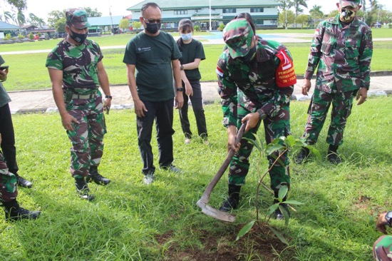 SINGKAWANG KITA- Kodim 1202 Singkawang dan FIF Group Cabang Singkawang melakukan penanaman pohon sebanyak 265 bibit pohon di Makodim 1202 Singkawang, Jumat (16/10/2020).