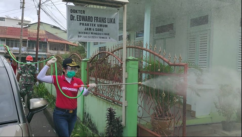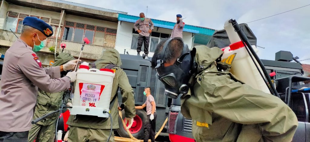 Kapolres Singkawang AKBP Prasetiyo Adhi Wibowo bahkan sejak pagi turun membawa satu alat semprot, ia berkeliling di pasar-pasar tradisional Kota Singkawang yang kemudian ia lanjutkan dengan penyemprotan menggunakan water canon.