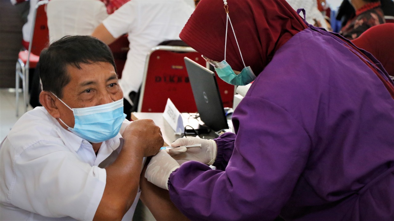 Kegiatan vaksinasi ini dilaksanakan selama lima hari secara bertahap dengan menerapkan protokol kesehatan.