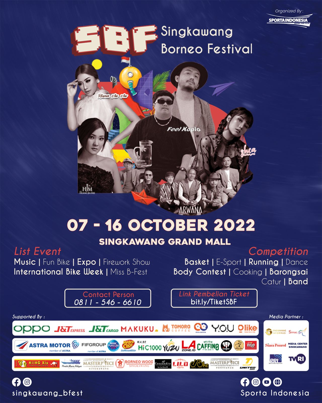 Di Singkawang Borneo Festival akan meriahkan dengan berbagai kegiatan, seperti Expo UMKM, penampilan artis, music performance dan sport competition.