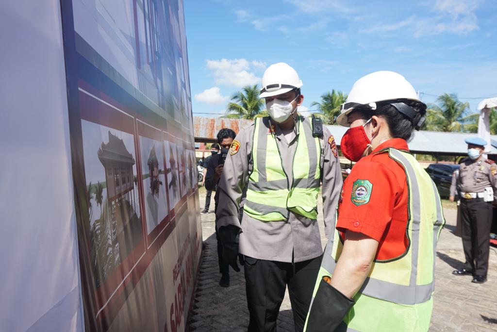 SINGKAWANG KITA- Wali Kota Singkawang, Tjhai Chui Mie bersama Kapolres Singkawang, AKBP Prasetiyo Adhi Wibowo melakukan peletakan batu pertama pembangunan Aula Sarja Arya Racana Polres Singkawang, Jumat (9/7).