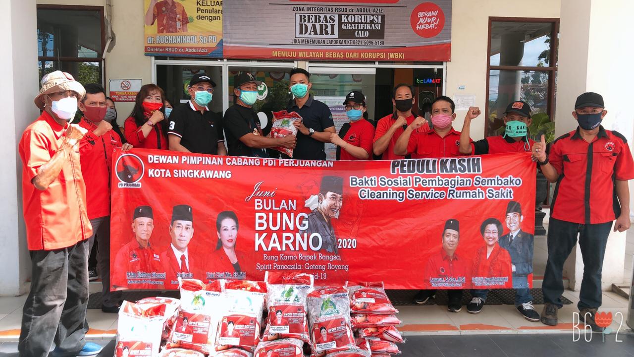 SINGKAWANG, KITA- DPC PDI Perjuangan Kota Singkawang menggelar peringatan Bulan Bung Karno Bapak Bangsa, sejumlah agenda digelar seperti donor darah, pembagian sembako untuk cleaning service di empat rumah sakit, penanaman pohon serta gotong royong perbaikan kerusakan jalan.
