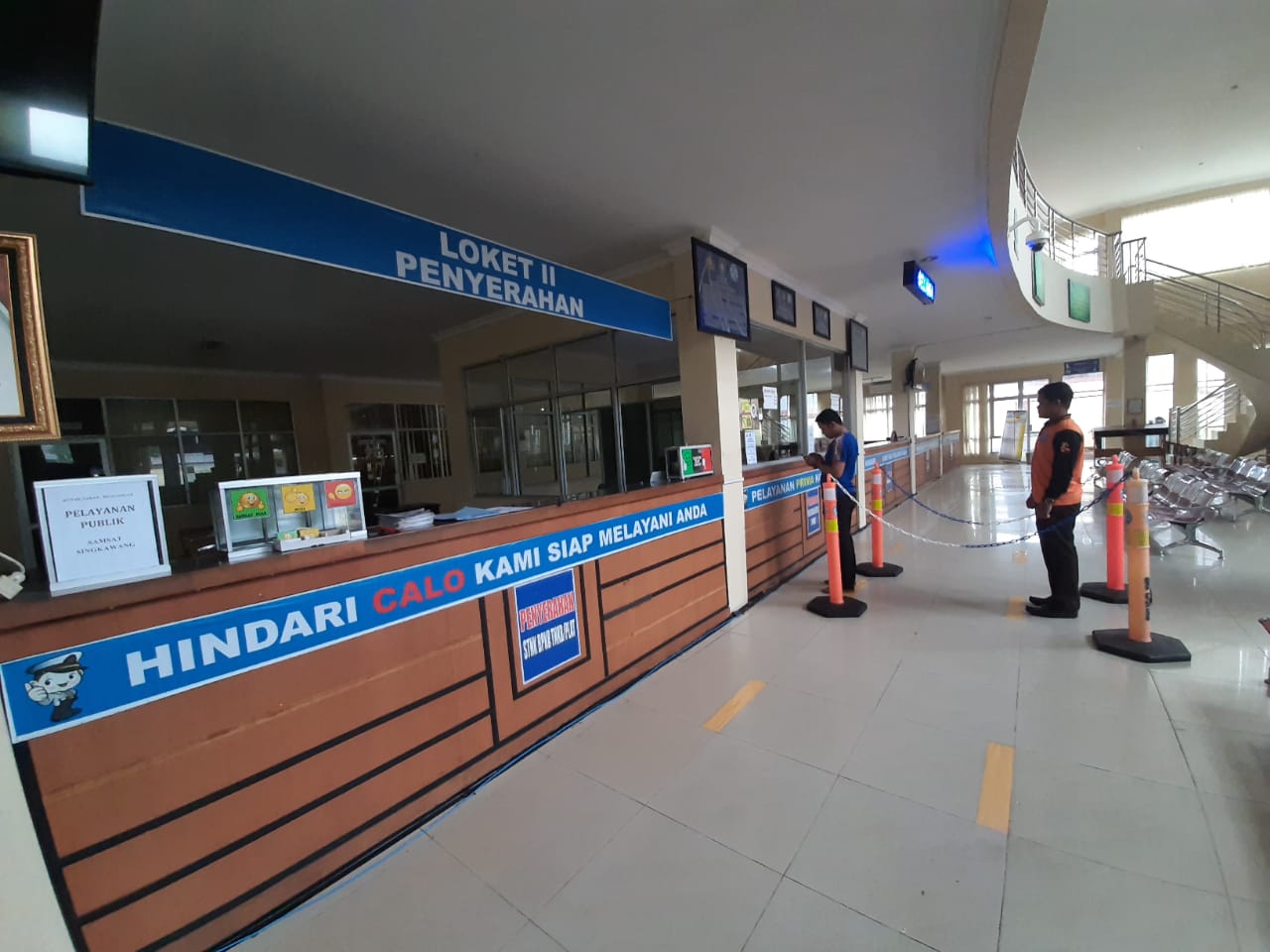 Agar masyarakat memiliki jarak antara satu sama lain ketika tengah berurusan, Polres Singkawang memberi tanda silang di kursi-kursi antrean di layanan publik. Antrean berdiri juga diberi tanda jarak.