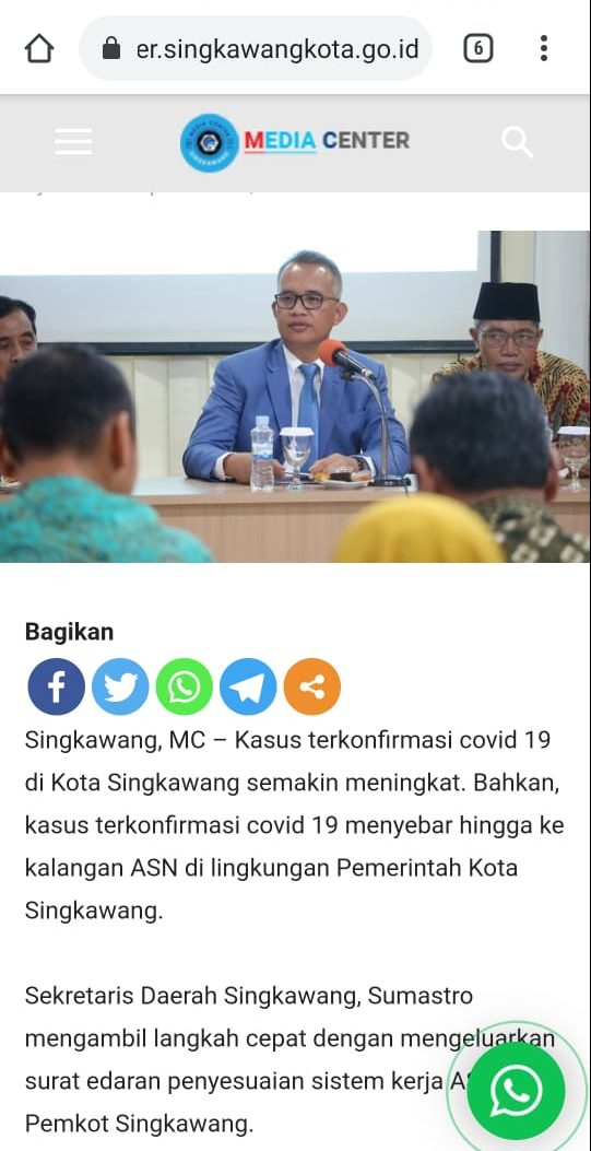 SINGKAWANG KITA- Melalui media komunikasi pemerintah yang dikelola Diskominfo Singkawang yakni media center singkawang, Sekda Singkawang Sumastro membantah telah lamban, bahkan dalam tulisan di website media center dengan judul “CEGAH COVID 19, ASN SINGKAWANG TERAPKAN WFH DAN WFO” mereka mengklaim sudah bertindak cepat dengan mengeluarkan surat edaran penyesuaian sistem kerja ASN Pemkot Singkawang.