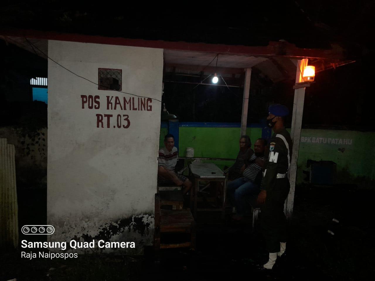Personel Subdenpom XII/2-4 Kapuas melaksanakan Komsos dengan petugas poskamling di RT 03 Jalan Letkol Setdaji no 38 kelurahan selat hilir, kecamatan selat kabupaten kapuas.
