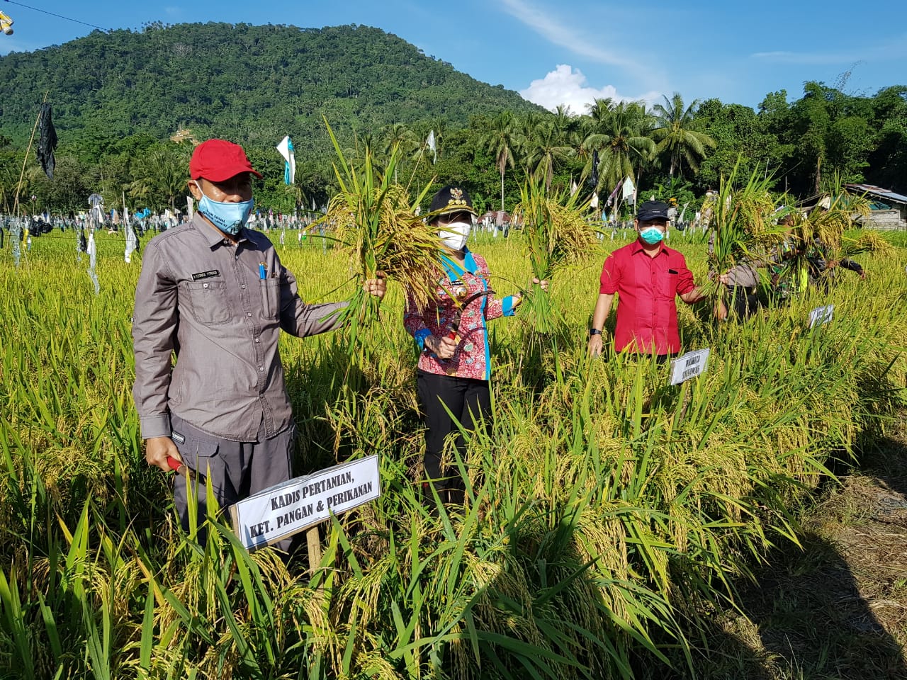 “Mari kita tingkatkan terus produksi hasil pertanian, padi, jagung dan umbi-umbian seperti keladi serta manfaatkan lahan pekarangan dengan menanam tanaman seperti cabai, cangkung, sawi dan lain-lain,” ujarnya.